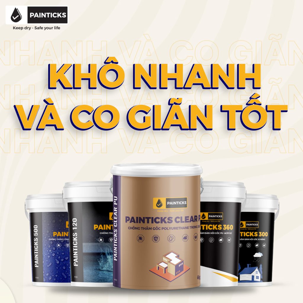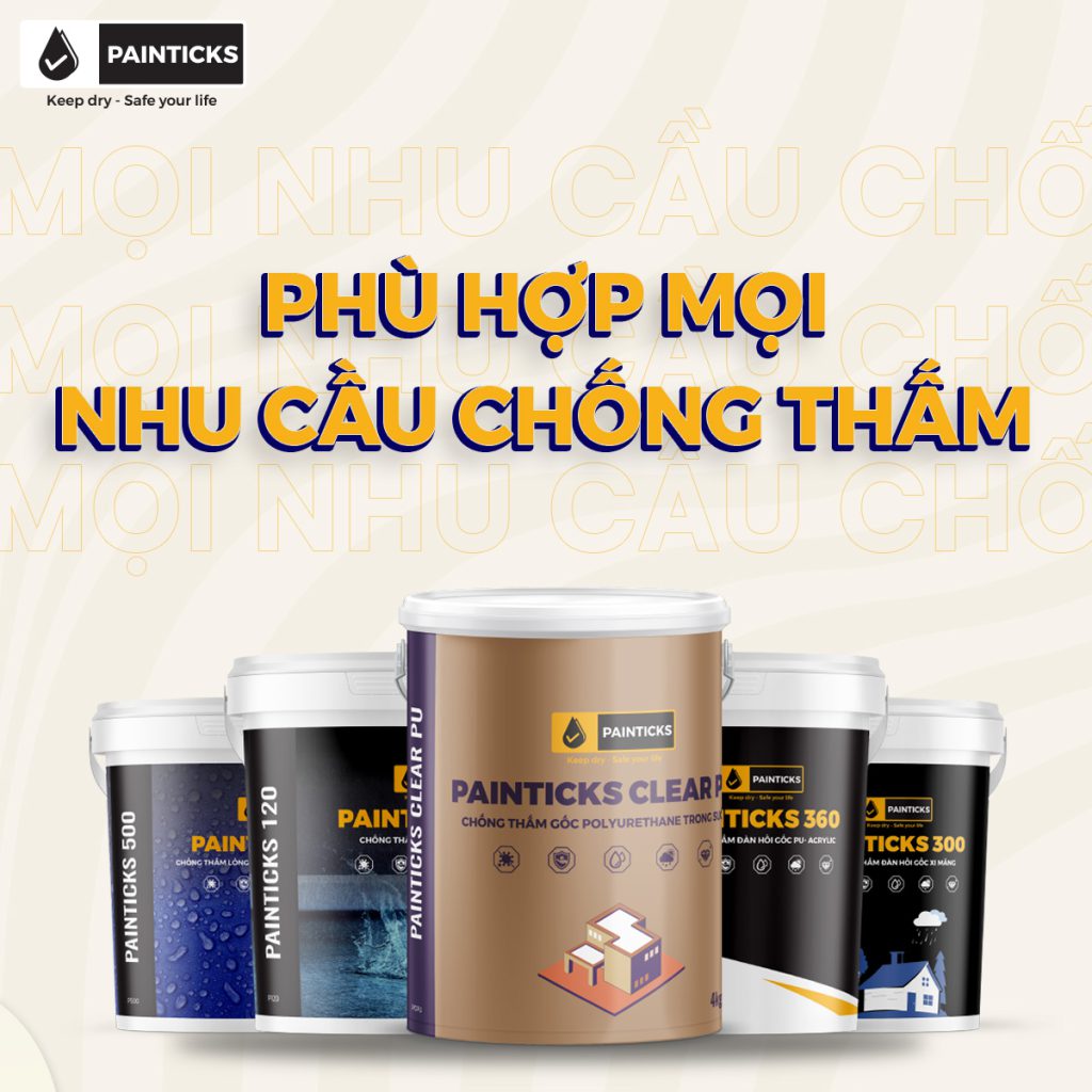 - Painticks – sản phẩm phù hợp mọi nhu cầu chống thấm: Painticks ra đời với mục đích cung cấp một giải pháp chống thấm hiệu quả nhất, tiến bộ nhất, an toàn nhất và tiết kiệm nhất. Với các sản phẩm chống thấm đa dạng, Painticks đáp ứng mọi nhu cầu, bất kể độ phức tạp của công trình.